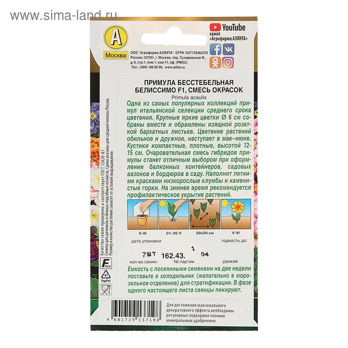 Семена цветов Примула "Белиссимо" смесь окрасок, F1, 7 шт