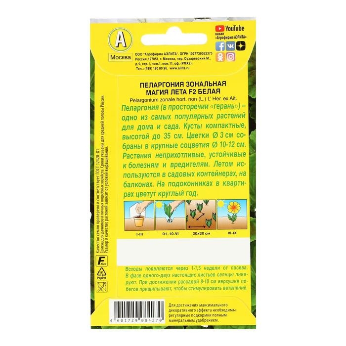 Семена цветов Пеларгония "Магия лета", белая, F2,5 шт.
