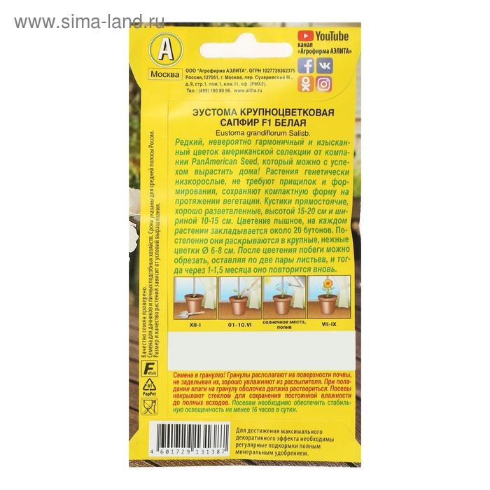Семена Эустома "Сапфир" F1 белая крупноцветковая , 5шт