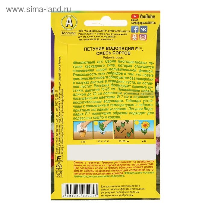 Семена Петуния ВОДОПАДИЯ F1 7шт. смесь сортов