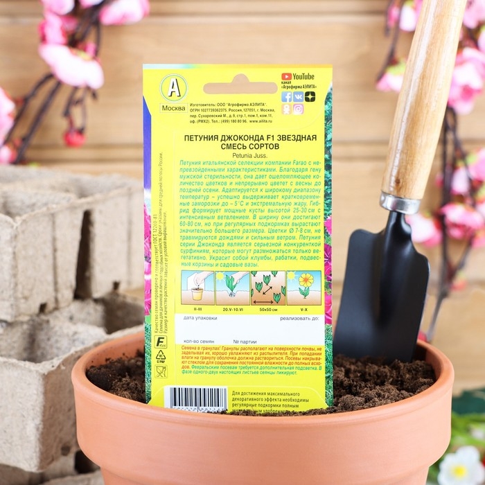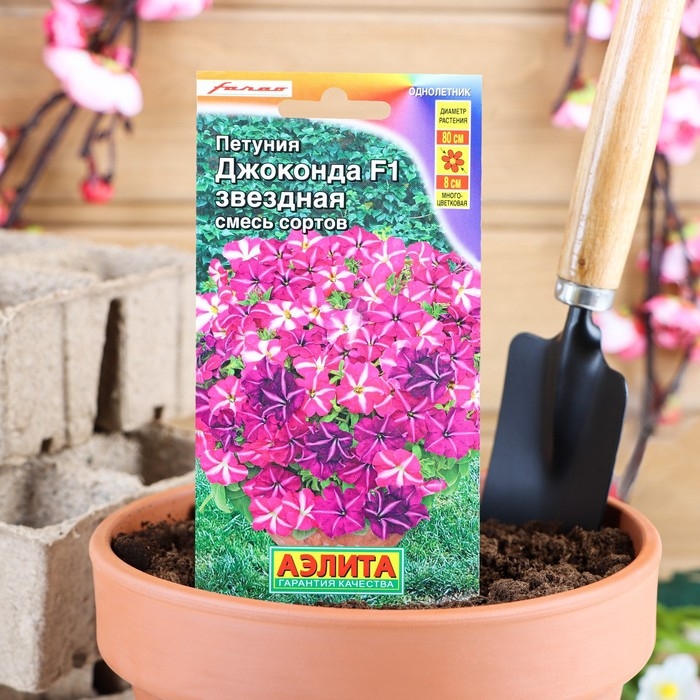 Петуния итальянской селекции компании Farao с непревзойденными характеристиками. Благодаря гену мужской стерильности, она дает ошеломляющее количество цветков и непрерывно цветет с весны до поздней осени. Адаптируется к широкому диапазону температур – успешно выдерживает кратковременные заморозки до – 5 °С и экстремальную жару. Гибрид формирует мощные кусты высотой 25-30 см с интенсивным ветвлением. В ширину они достигают 60-80 см, но при регулярных подкормках вырастают значительно большего размера. Цветки 7-8 см, не травмируются дождями и сильным ветром. Петуния серии Джоконда является серьезной конкуренткой сурфиниям, которые могут размножаться только вегетативно. Украсит собой клумбы, рабатки, подвесные корзины и садовые вазы.