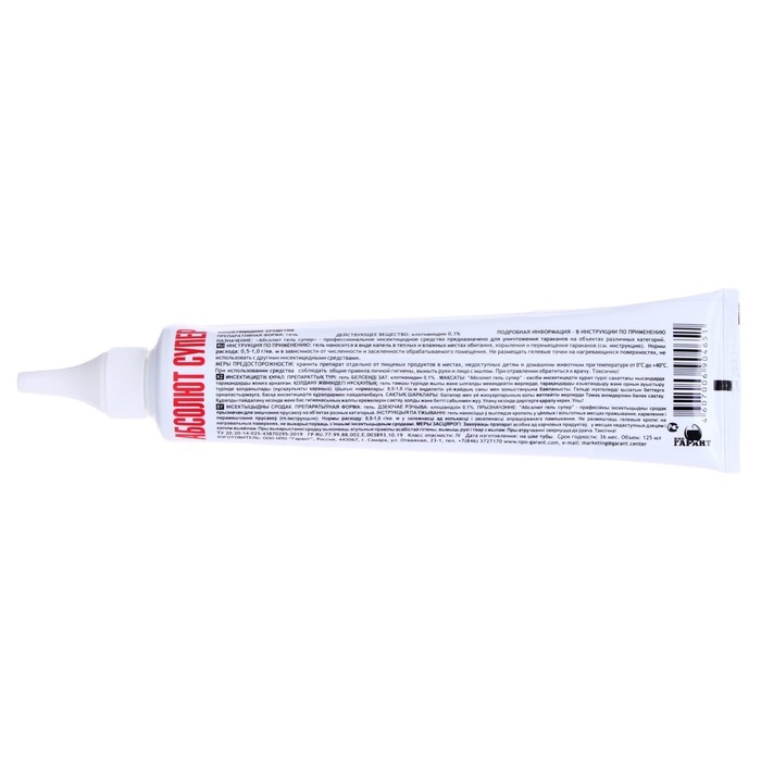 Абсолют гель -профессиональное инсектицидное средство. Готовое к применению средство в виде геля. Профессиональное инсектицидное средство Абсолют гель супер предназначено для уничтожения тараканов, муравьев (рыжих домовых и различных видов садовых), ос и мух. Гель - современная форма инсектицидных препаратов, представляющая собой отравленную пищевую приманку. В состав геля входят специально подобранные для насекомых пищевые компоненты и привлекатели, а основу составляет вода, благодаря чему насекомые находят гель на расстоянии 1 метра и охотно поедают его. Полная гибель тараканов наступает через 2-3 суток, мух, ос и муравьев - в течении суток.