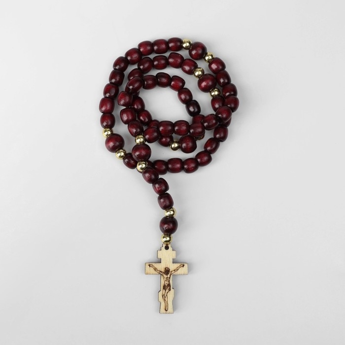 Чётки деревянные «Православные» 50 бусин через золотистый шарик, цвет коричневый