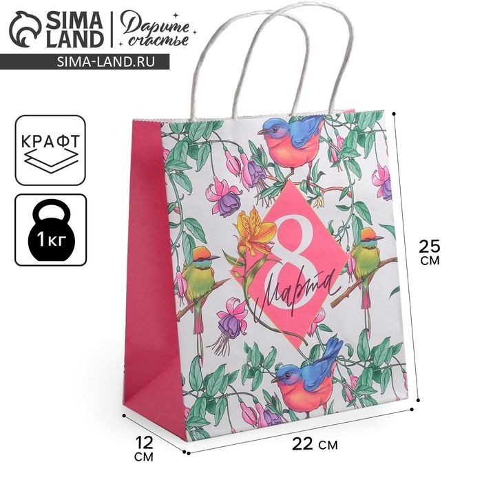 Пакет подарочный крафт, упаковка, «С 8 марта», 22 х 25 х 12 см