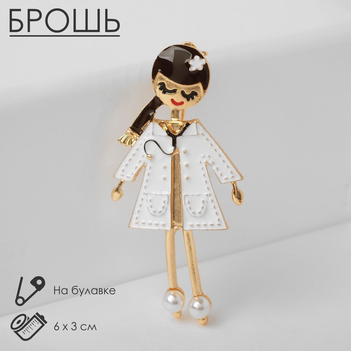 Брошь «Доктор» девушка, цвет бело-коричневый в золоте