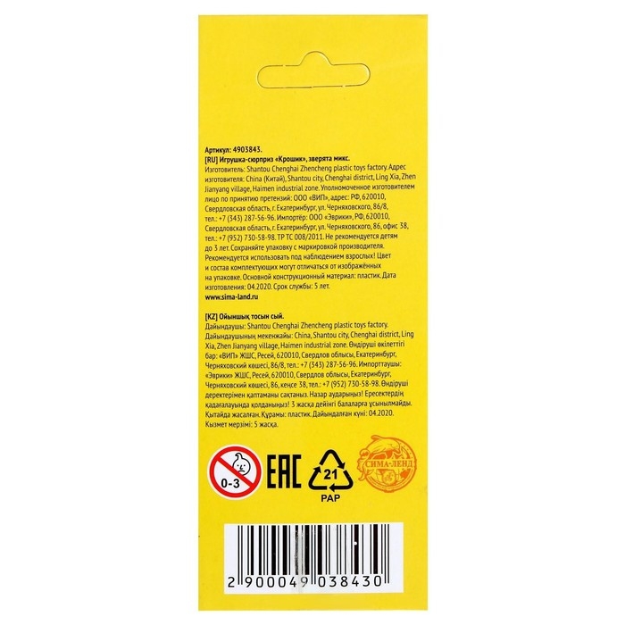 - Каждая игрушка — это маленький сюрприз. Внутри упаковки вы найдете милого пупсика высотой 8,5 см, одетого в костюм одного из забавных зверят.