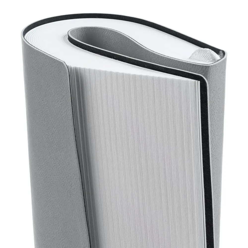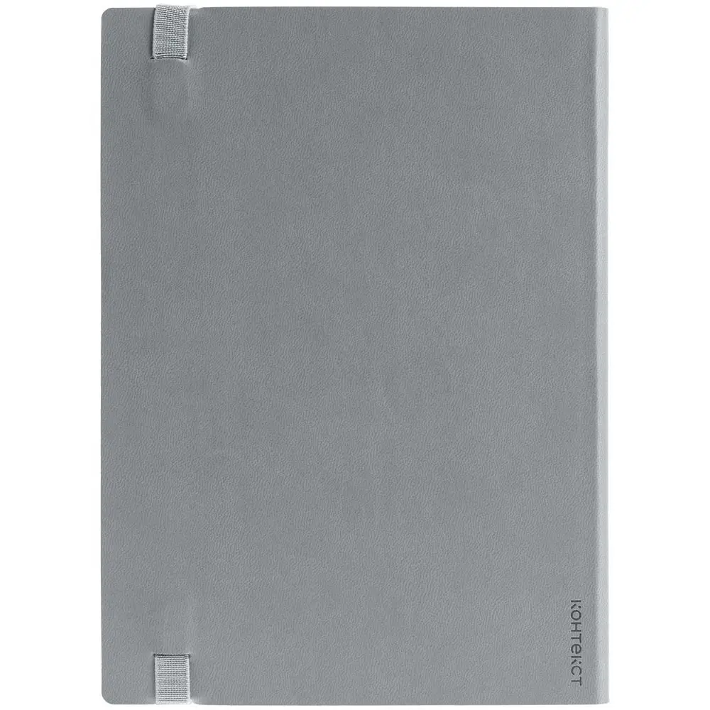 Ежедневник с гибкой обложкой выполнен из материала Latte, серый СС, и дополнен резинкой шириной 1 см, капталом и ляссе серого цвета.
