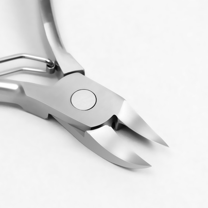 Кусачки педикюрные, с колпачком, изогнутая ручка, изогнутое лезвие, 11 см, длина лезвия - 15 мм, цвет серебристый