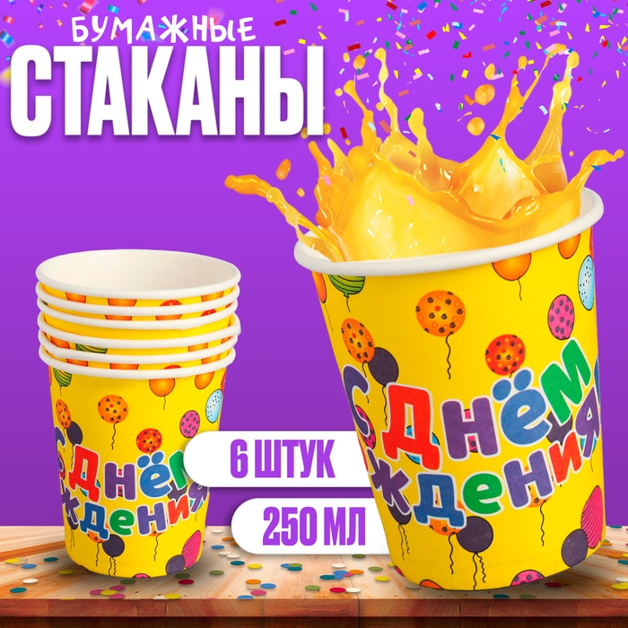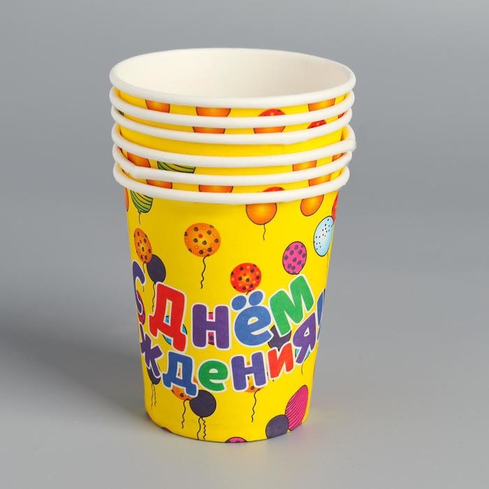 Стакан бумажный «С днём рождения», набор 6 шт.
