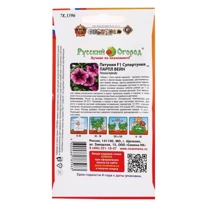 Семена цветов Петуния супертуния "Парпл вейн", F1, 6 шт