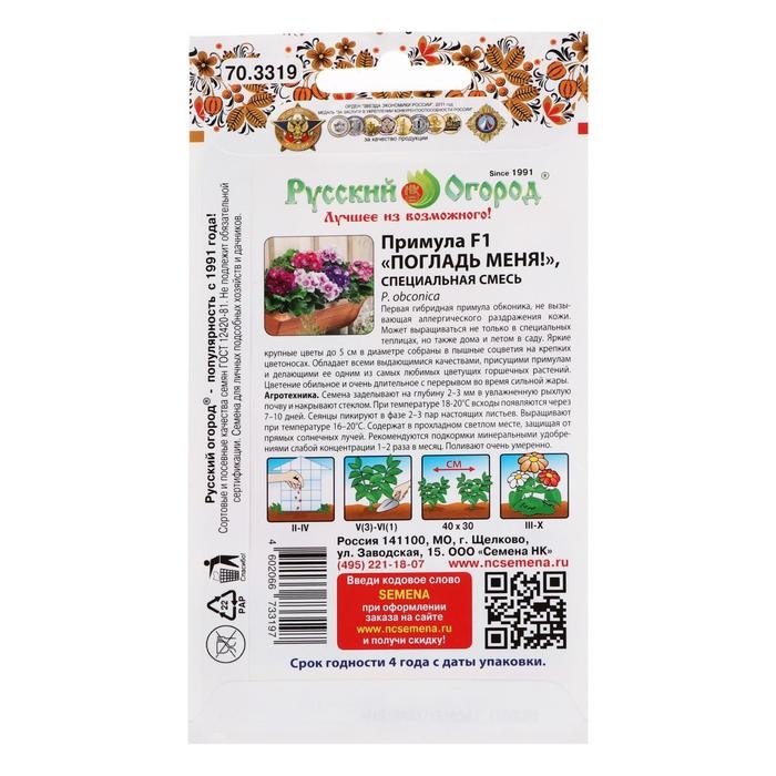 Семена цветов Примула "Погладь Меня", смесь, F1, 5 шт