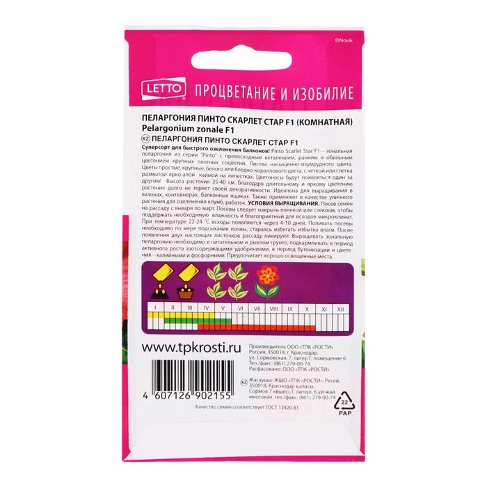 Семена цветов Пеларгония "Пинто Скарлет Стар", F1, 4 шт