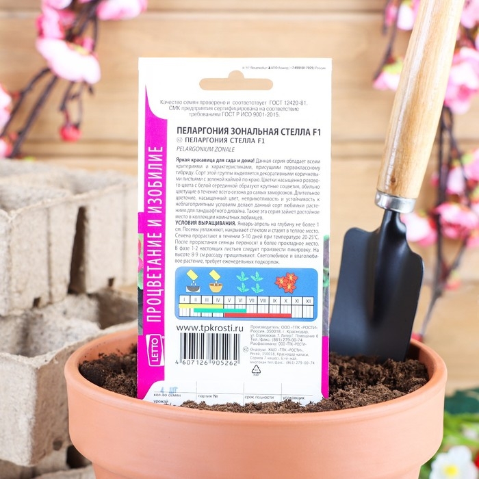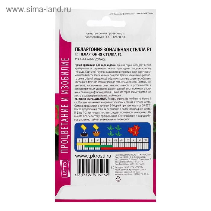 Семена цветов Пеларгония "Стелла", розовая с коричневым листом, F1, 4 шт