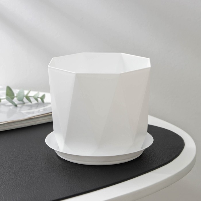 Горшок для цветов с поддоном «Призма», 1 л, цвет белый