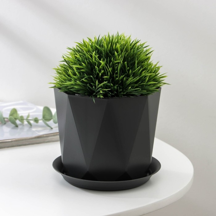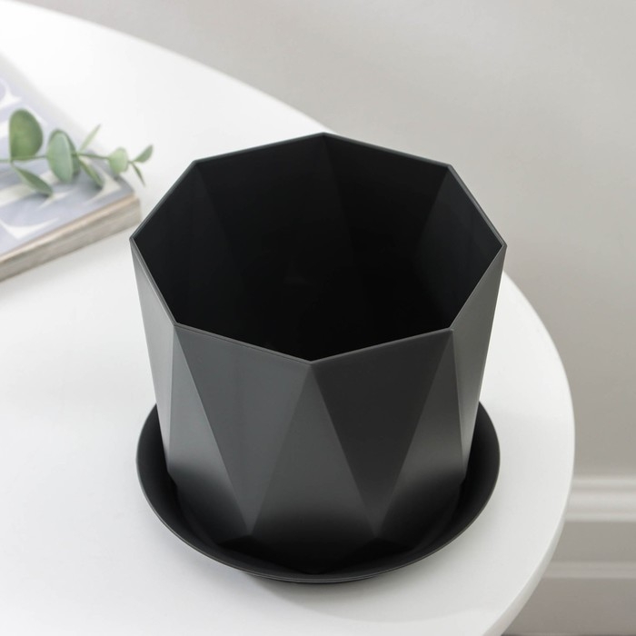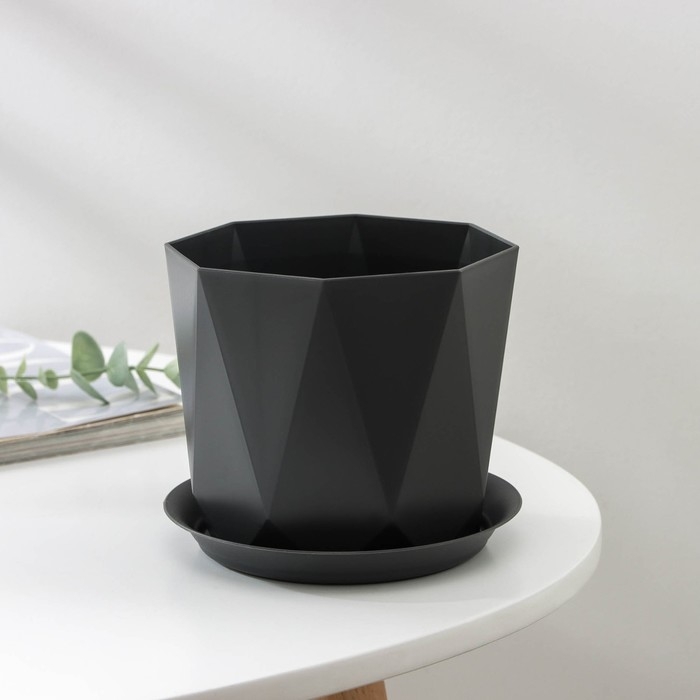 Горшок для цветов с поддоном «Призма», 1 л, цвет графитовый