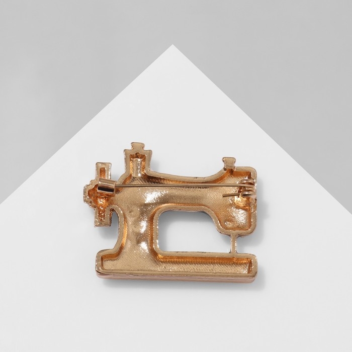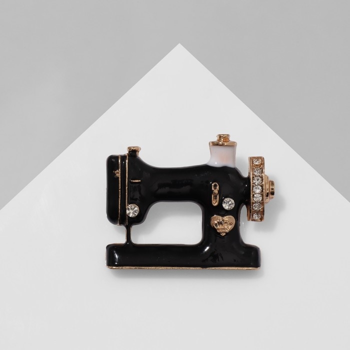Брошь «Швейная машина» с мотком ниток, цвет чёрно-белый в золоте