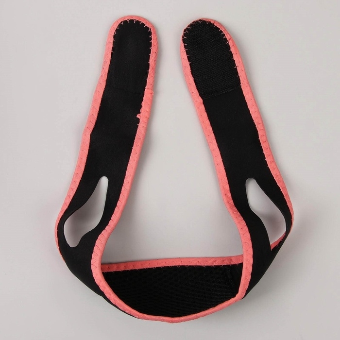 Маска текстильная для коррекции овала лица, на липучке, цвет чёрный/розовый