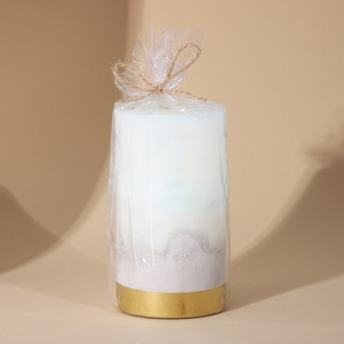 Свеча интерьерная белая с бетоном и золотом, 13 х 7 см