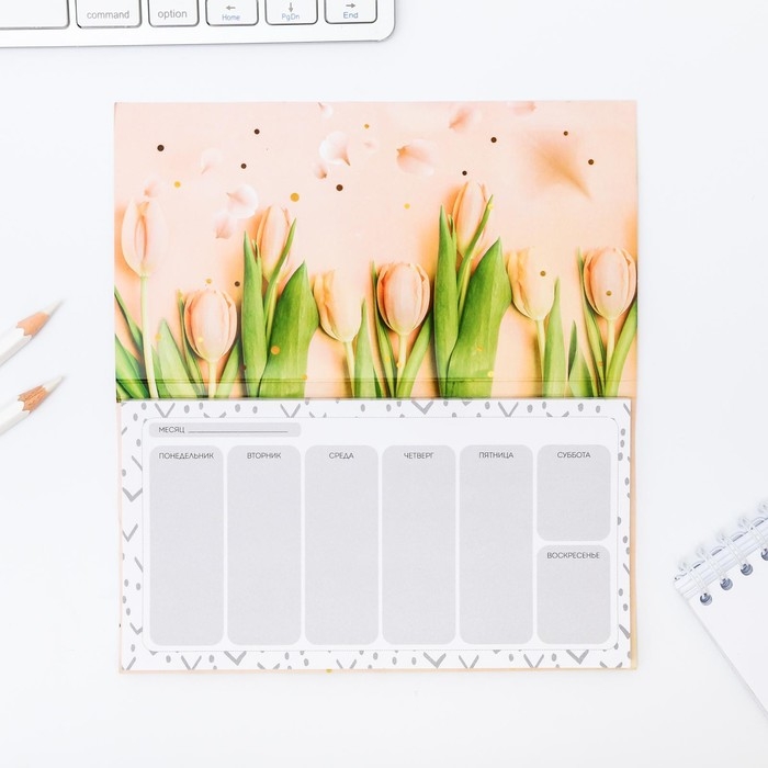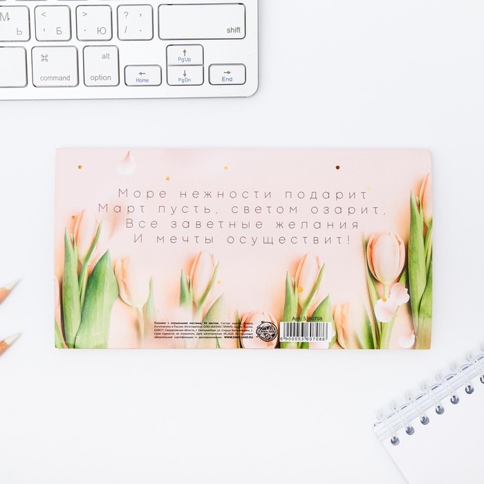 Планер с отрывными листами, 50 л. 17х9см «С 8 Марта тюльпаны»