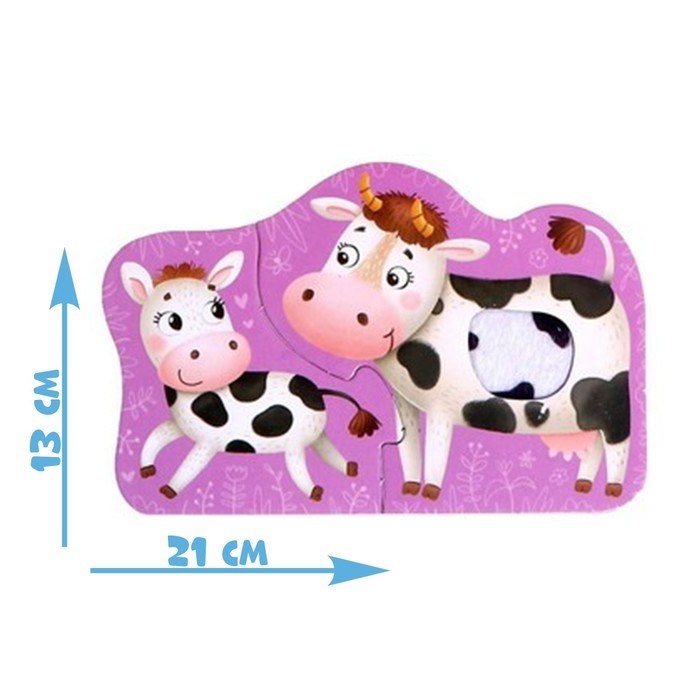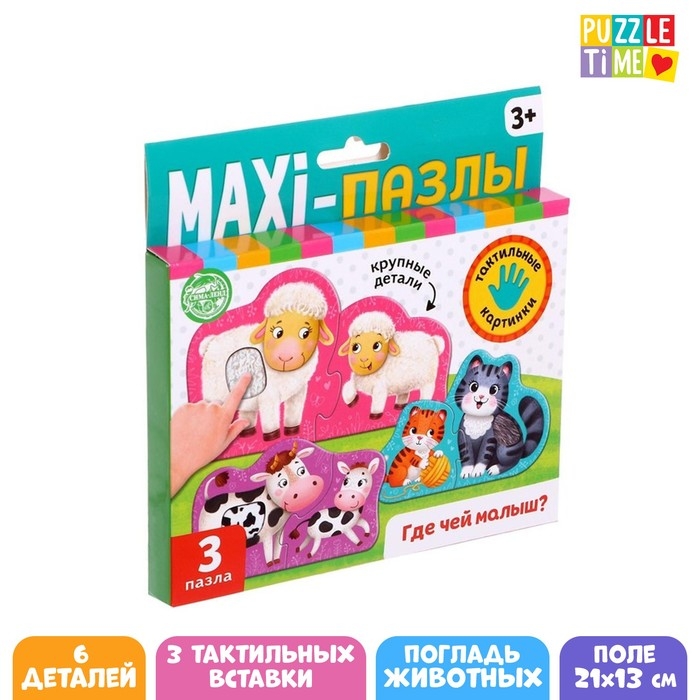 Макси-пазлы с тактильными вставками «Где чей малыш?», 3 пазла, 6 деталей