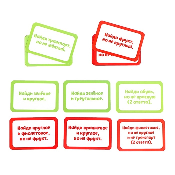 - Разложите игровое поле и карточки. С одной стороны зелёные, с другой — красные. Первые предполагают более простой уровень вопросов, поэтому начинать лучше с них.