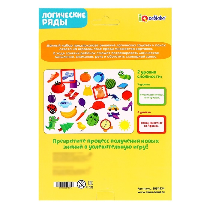 Набор поможет в игровой форме научить ребёнка рассуждать логически. Он обогатит свой словарный запас, разовьёт речь, мышление и внимание.
