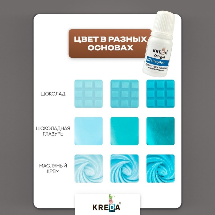 Краситель пищевой Kreda Bio Oil-gel, жирорастворимый, голубой, 10 мл
