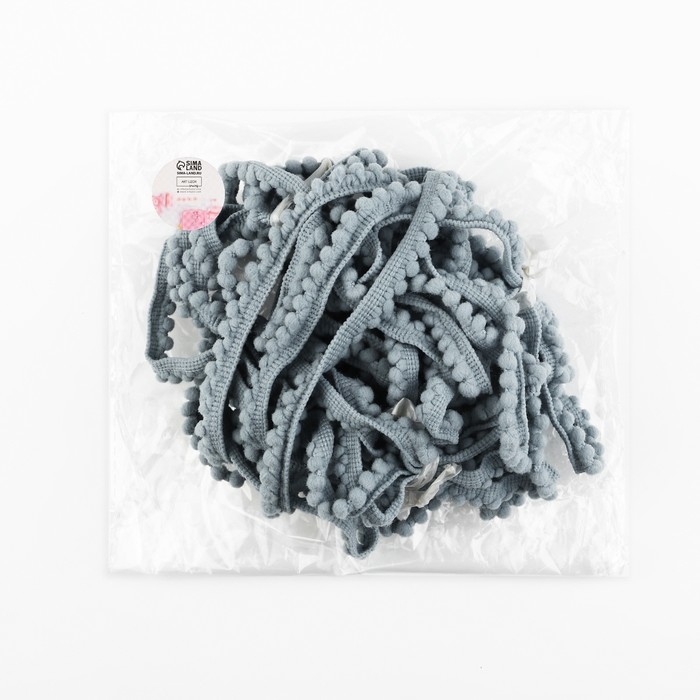 Тесьма декоративная с помпонами, 12 ± 2 мм, 9,1 ± 0,5 м, цвет серый