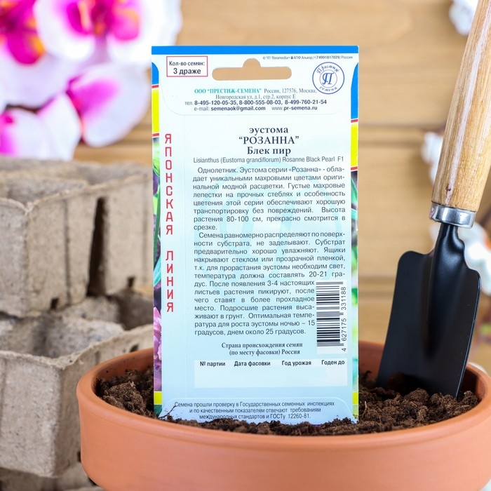 Семена Эустома «Розанна Блек Пир» — однолетник с махровыми цветками оригинального оттенка. Высота растения достигает 80-100 см. Цветки с густыми лепестками увенчивают крепкие и прочные стебли. Сорт подходит для срезки, хорошо выдерживает транспортировку. Выращивается рассадным способом.