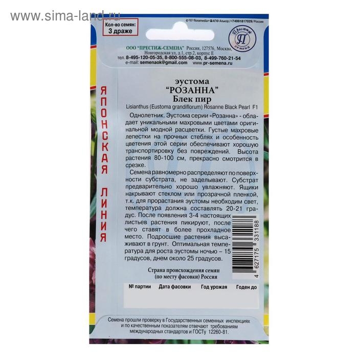 Семена цветов Эустома "Розанна" Блек пир F1, драже, 3 шт