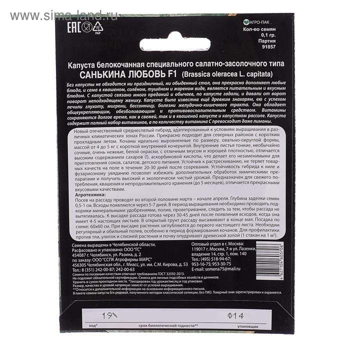Семена Капуста б/к Санькина любовь®F10 0.1 гр.