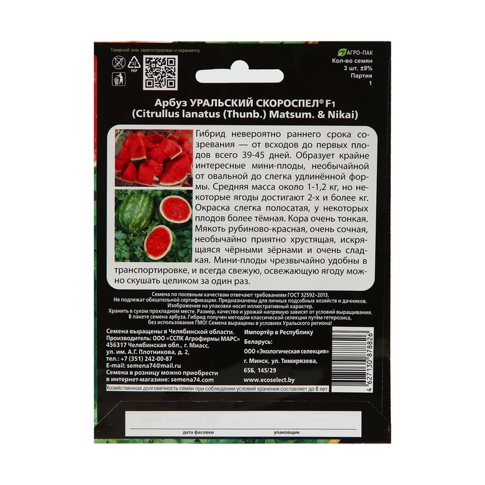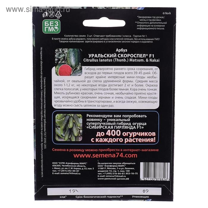 Семена Арбуз "Уральский Скороспел", F1, набор 5 шт