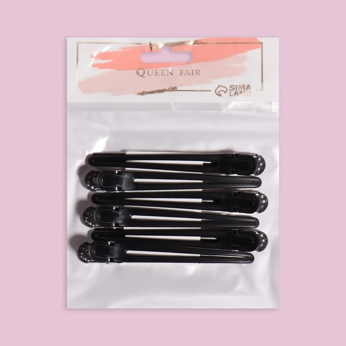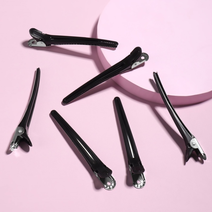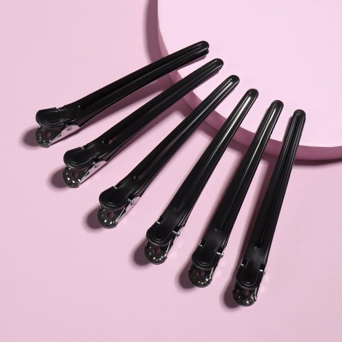 Зажимы для волос, набор - 6 шт, 10 см, цвет чёрный