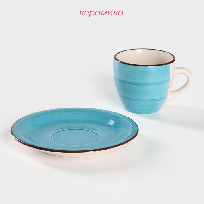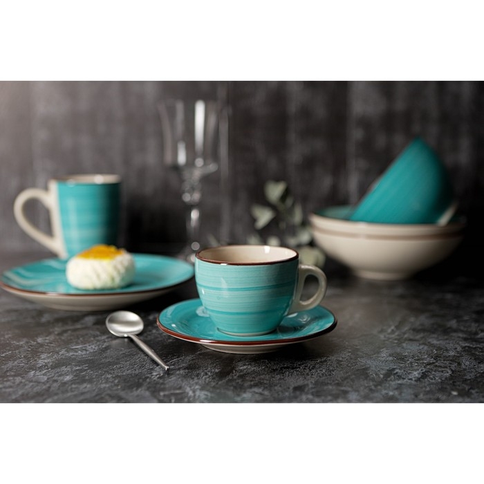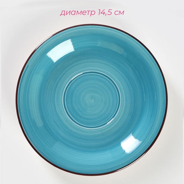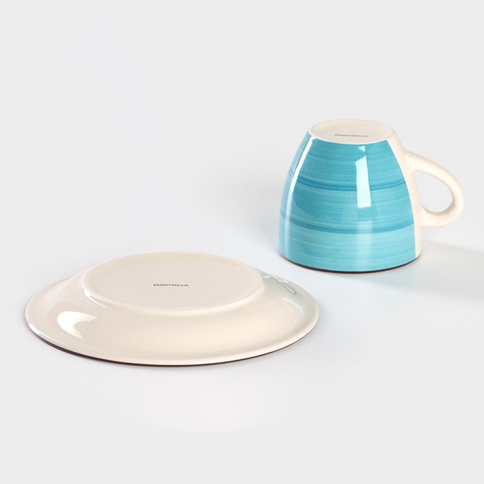 Чайная пара керамическая Доляна «Морской мир», 2 предмета: чашка 200 мл, блюдце d=14,5 см, цвет голубой