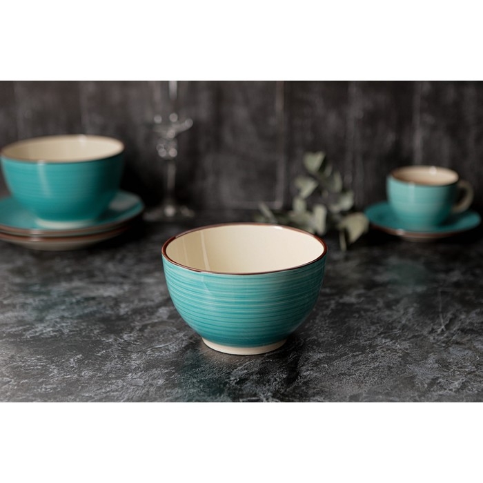 Салатник керамический Доляна «Морской мир», 800 мл, d=14 см, цвет голубой