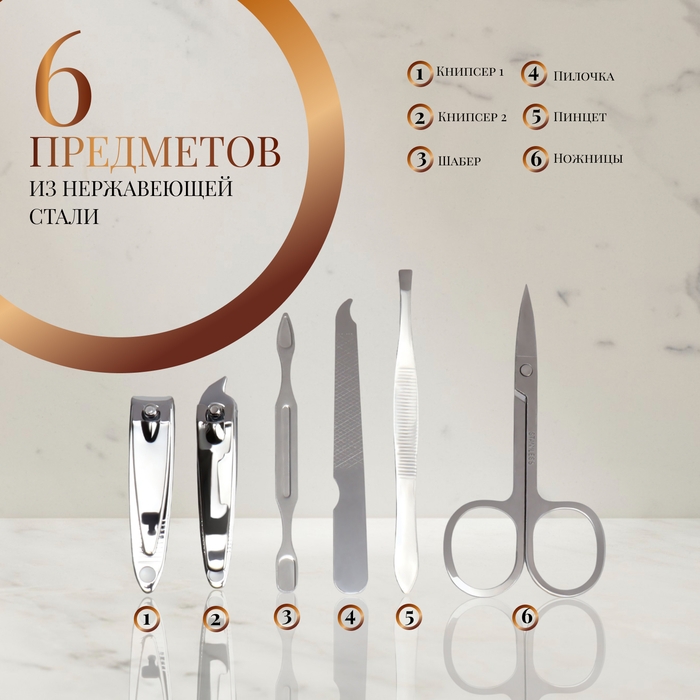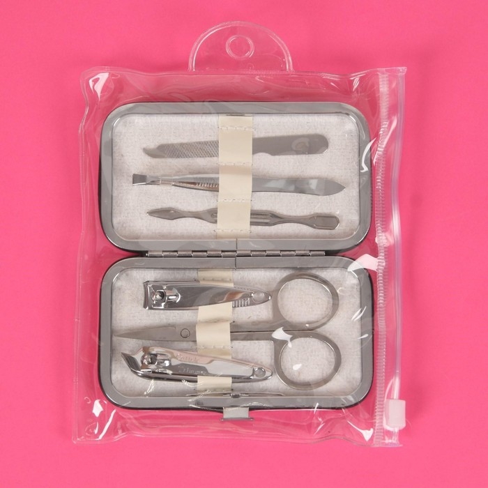 Набор маникюрный, 8 предметов, в футляре, цвет коричневый