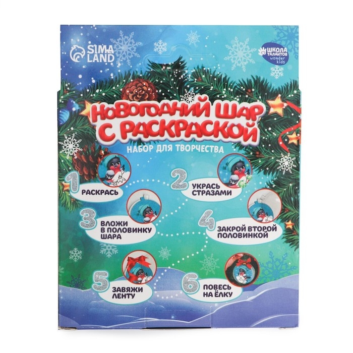 Ёлочный шар с раскраской на новый год «Снегирь», новогодний набор для творчества