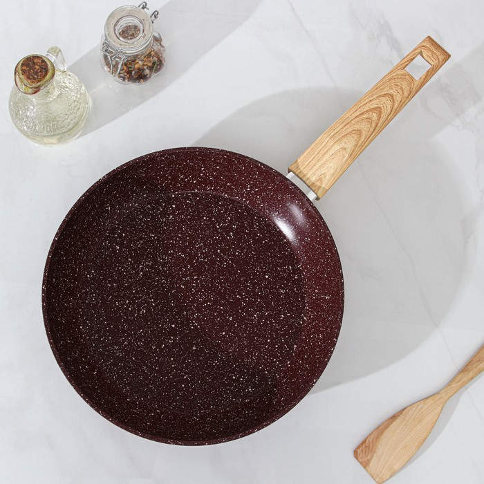 Сковорода Доляна Promo, d=22 см, h= 5 см, пластиковая ручка, антипригарное покрытие, цвет бордовый