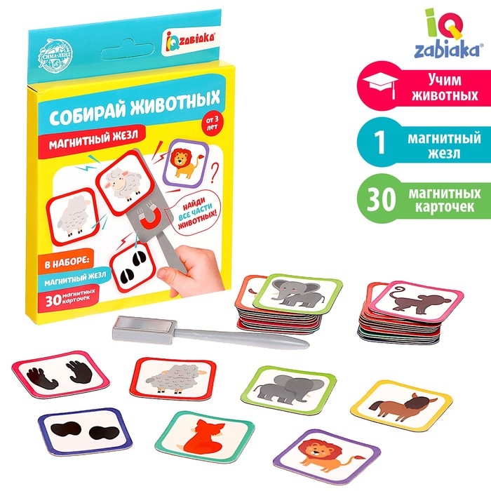 Магнитный жезл с заданиями «Собирай животных» рекомендован детям старше 3 лет.