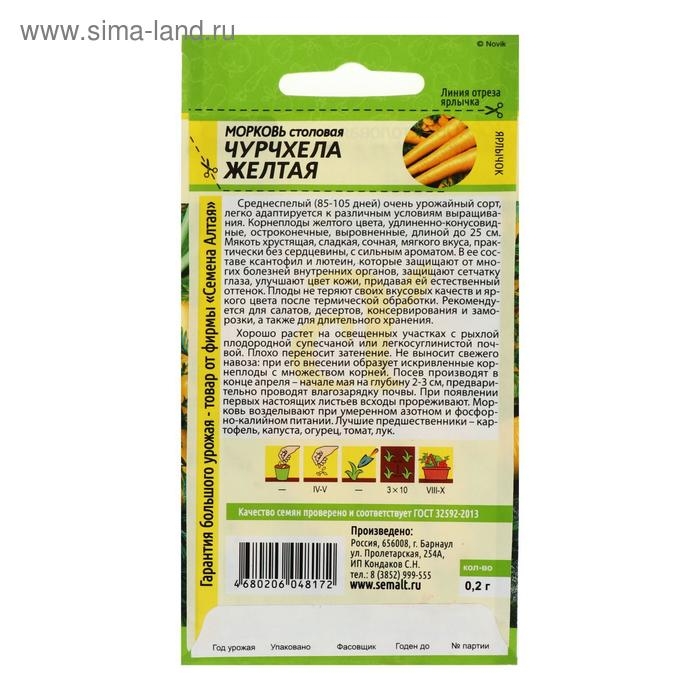 Семена Морковь "Чурчхела", желтая, 0,2 г