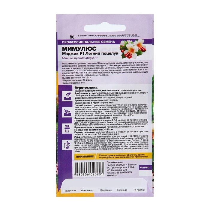 Семена цветов Мимулюс Мэджик "Летний поцелуй", 7 шт