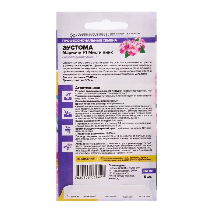 Семена цветов Эустома "Мариачи Мисти", 5 шт