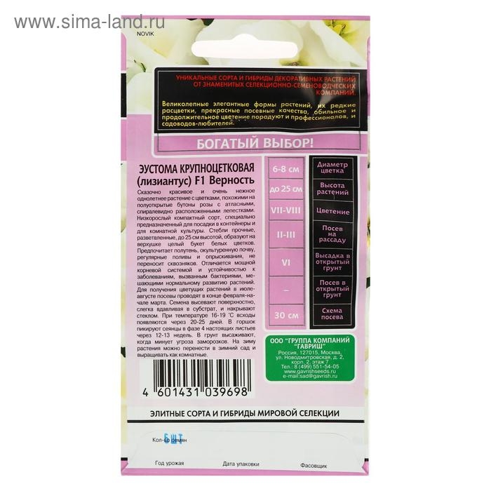 Семена цветов Эустома "Верность", F1, 4 шт