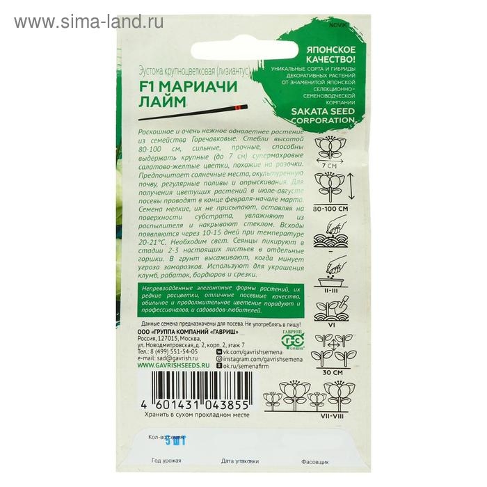 Семена цветов Эустома "Мариачи лайм", F1, 4 шт