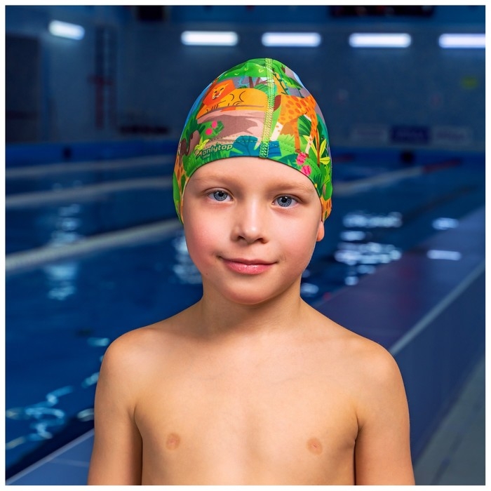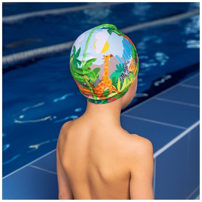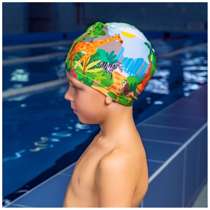 Шапочка для плавания детская ONLYTOP «Сафари», тканевая, обхват 46-52 см