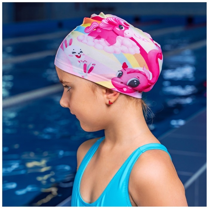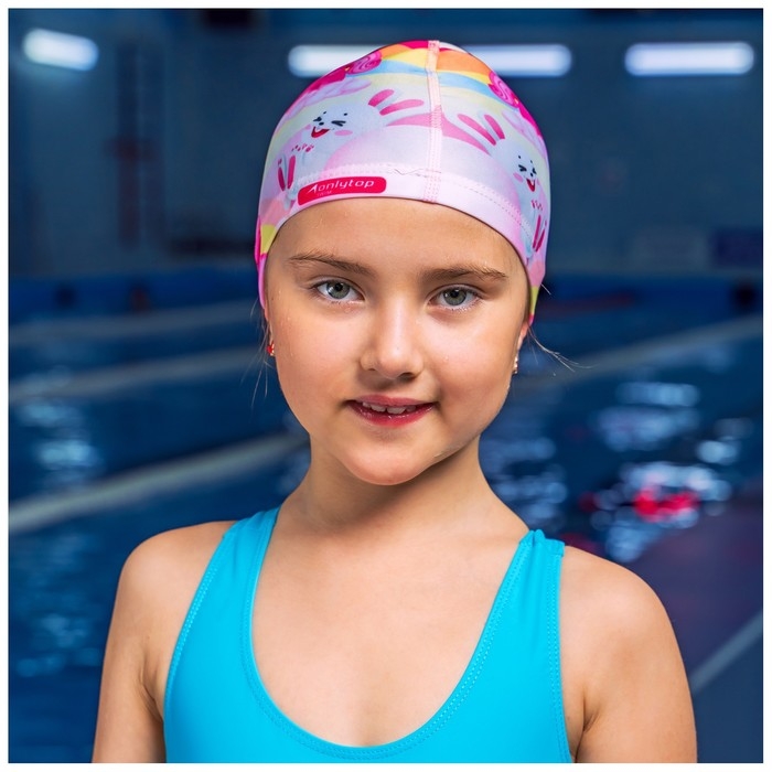 Шапочка для плавания детская ONLYTOP Cute, тканевая, обхват 46-52 см