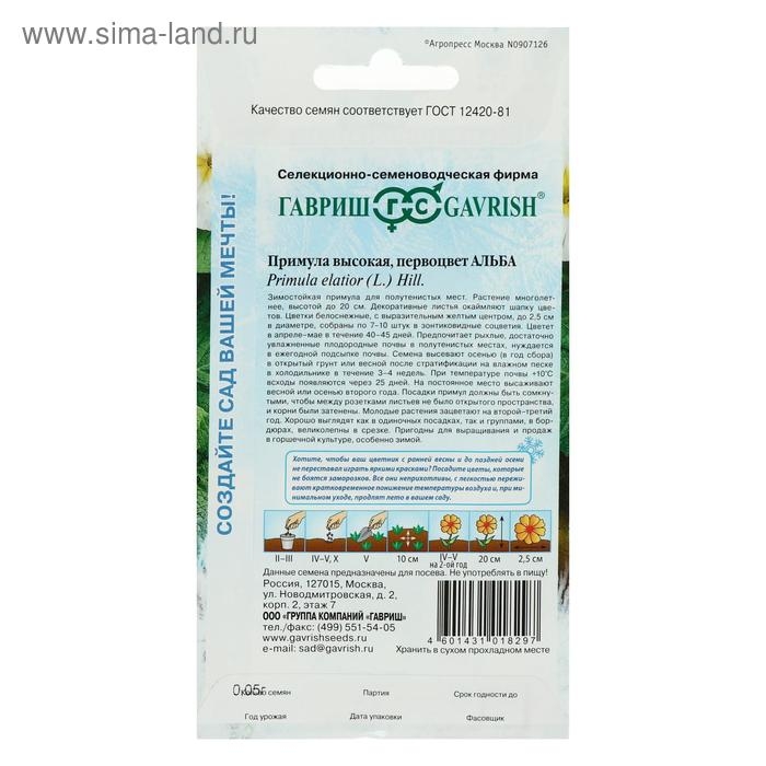 Семена цветов Примула "Альба высокая", серия Устойчив к заморозкам, 4 шт