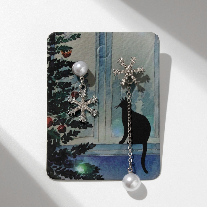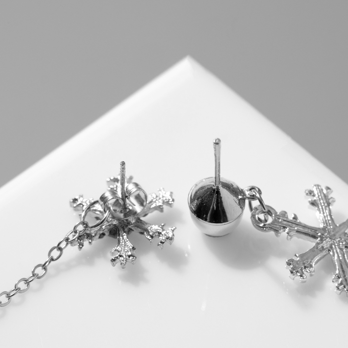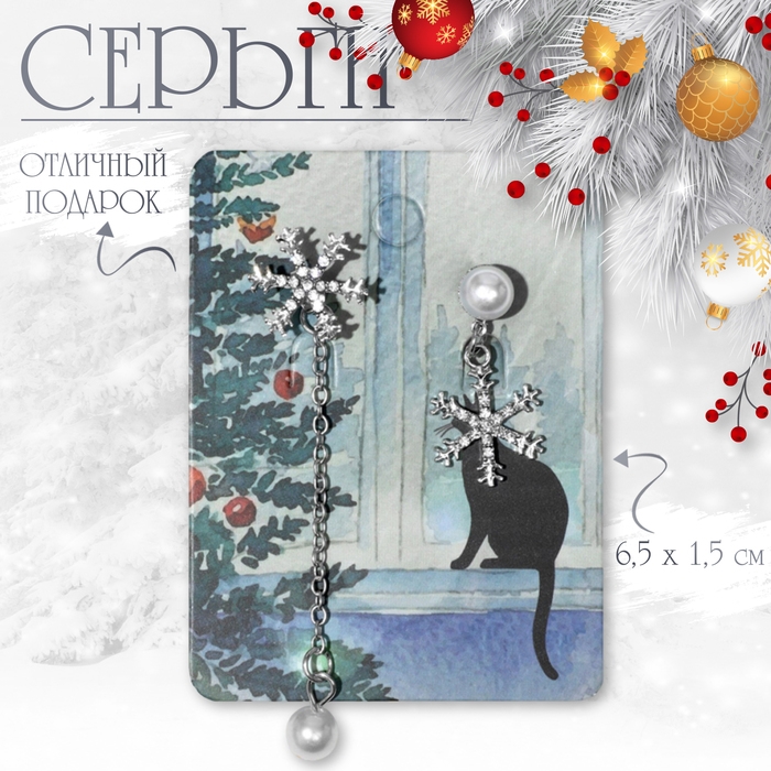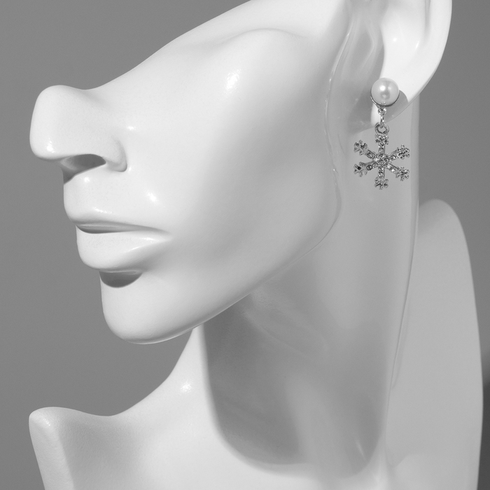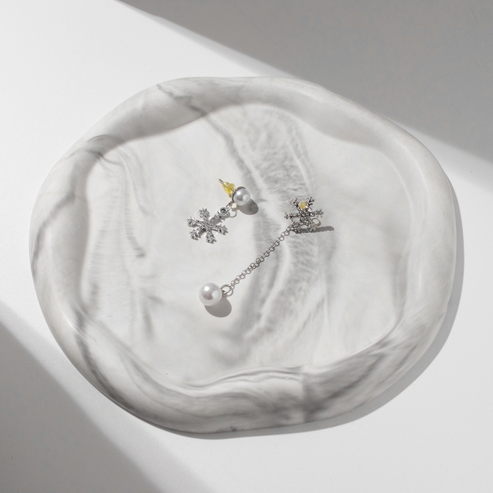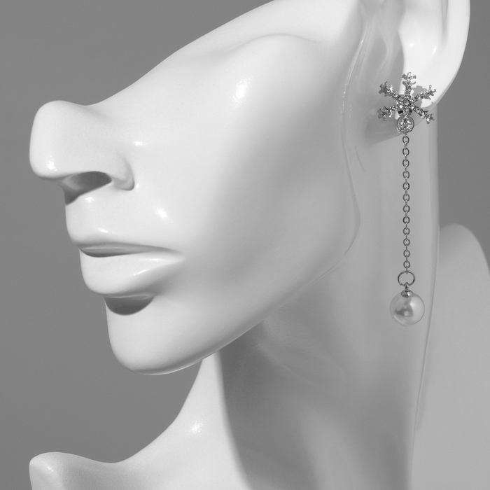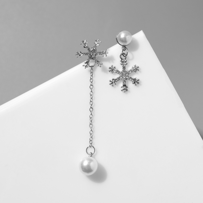 Новый год! Серьги с жемчугом «Снежинки», асимметрия, цвет белый в серебре