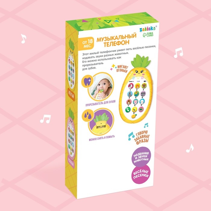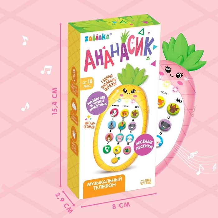 Музыкальный телефон «Ананасик», свет, звук, цвет розовый