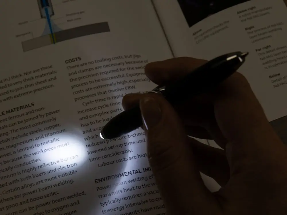 Ручка-спиннер оборудована небольшим фонариком на верхней части корпуса.
